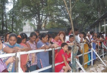 Long queue of devotees waiting in line to offer prayer to Lord Muneesvarar, also known as the God of Warrior.
